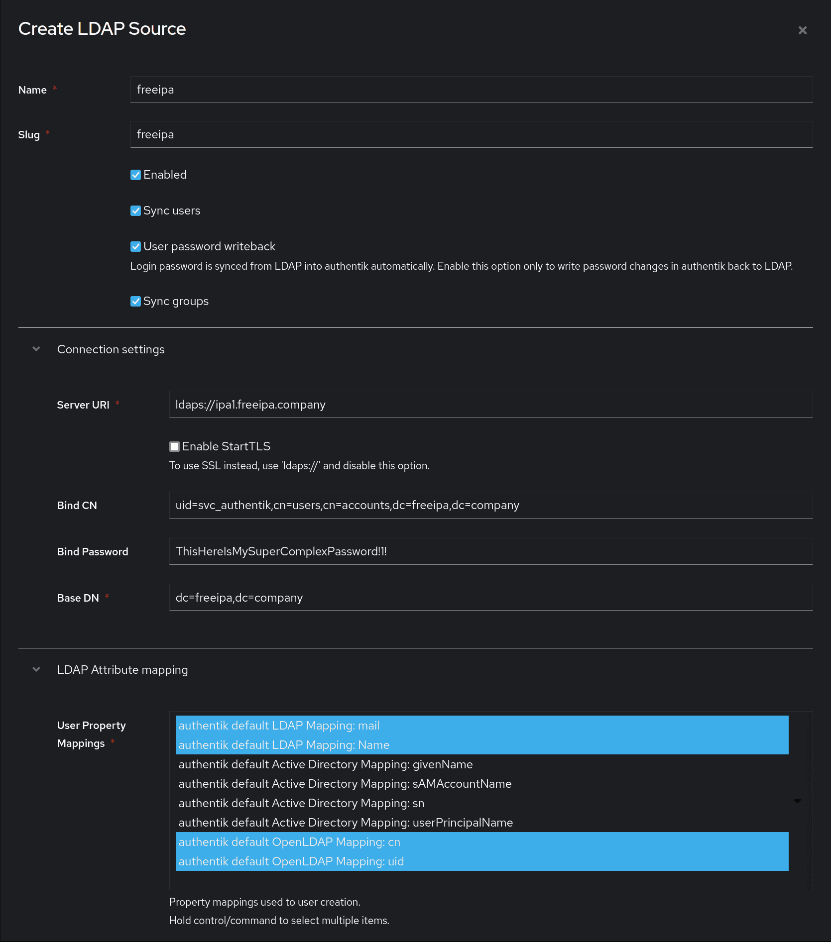 • Bind CN: uid=svc_authentik,cn=users,cn=accounts,dc=freeipa,dc=company